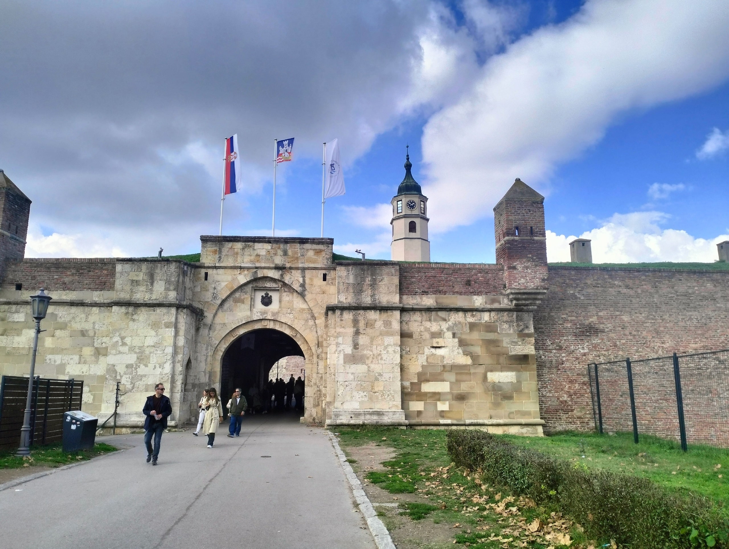 Начали с Петроварадинской крепости — одной из главных достопримечательностей Нови-Сада. Возводили её почти век с 1692 года для защиты от турков. Сегодня крепость является одним из самых масштабных укреплений Европы, дошедших до нашего времени в целости и сохранности. Из интересного: здесь находится башня с часами, минутная стрелка которых короче часовой. Проплывающим по Дунаю торговцам важнее было знать, который час, поэтому часовую стрелку сделали больше. Терраса с ресторанами с видом на Дунай и Нови-Сад, много зелени, бежевые домики с красными крышами — всё это доставило ударную дозу серотонина и витамина D в непривычную для октября температуру +25–30 °С.