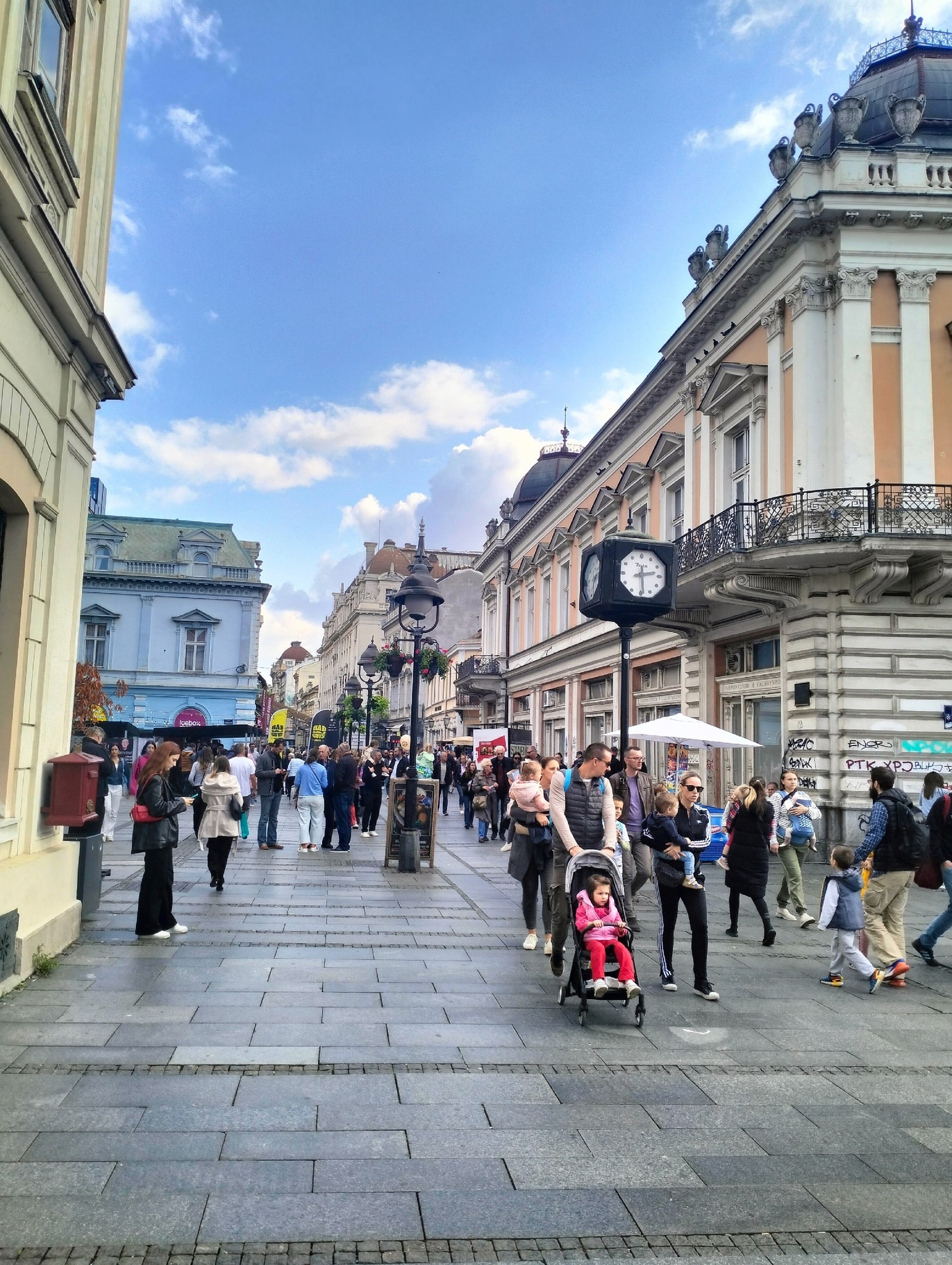 Улица Князя Михаила бурлила жизнью: живая музыка (до сих пор напеваю Livin’ La Vida Loca!), спешащие люди, уютные кафе с террасами… Я пыталась уловить атмосферу этого кипучего места, запечатлевая красивейшие здания, стараясь не зацепить в объектив потоки прохожих. Эта центральная улица меня и натолкнула на сравнение с Санкт-Петербургом: здесь есть цельность, нет вырвиглазных рекламных вывесок, здания органично сменяют друг друга, хотя и сочетая разные стили, а граффити хоть и смотрятся неряшливо, но вселяют чувство… не знаю, как будто ты дома, а не в стерильном помещении.